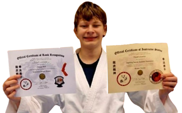 Outside the dojo, he enjoys video games, theatre, and spending time with his friends. David is a valued assistant coach who contributes energy, commitment, and serves as a positive role model for the younger students.